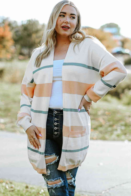 Plus Size Open Front Dropped Shoulder Knit Cardigan