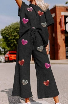 Plus Size Round Neck Short Sleeve Two-Piece Loungewear Set