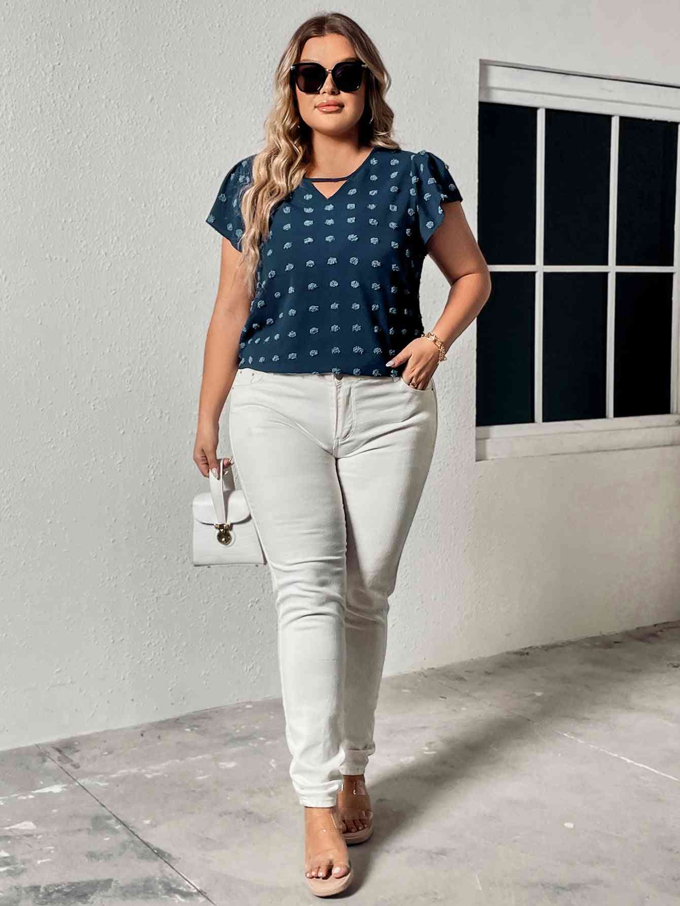 Plus Size Swiss Dot V-Neck Flutter Sleeve Tee