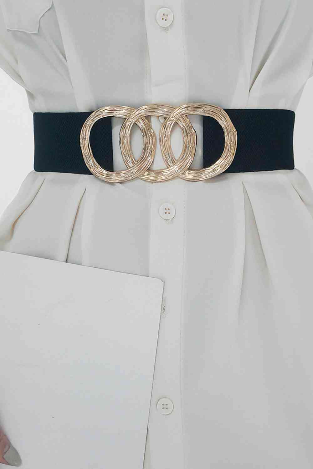 Add a modern and comfortable touch to your attire with this elastic wide belt featuring a zinc alloy buckle! ⚙️ Perfect for versatile styling and a snug fit.